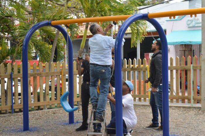 Estamos realizando el remozamiento del área de juegos del Parque Municipal, actualizando y dando mantenimiento a los juegos para brindar un espacio seguro y divertido para todos los niños.