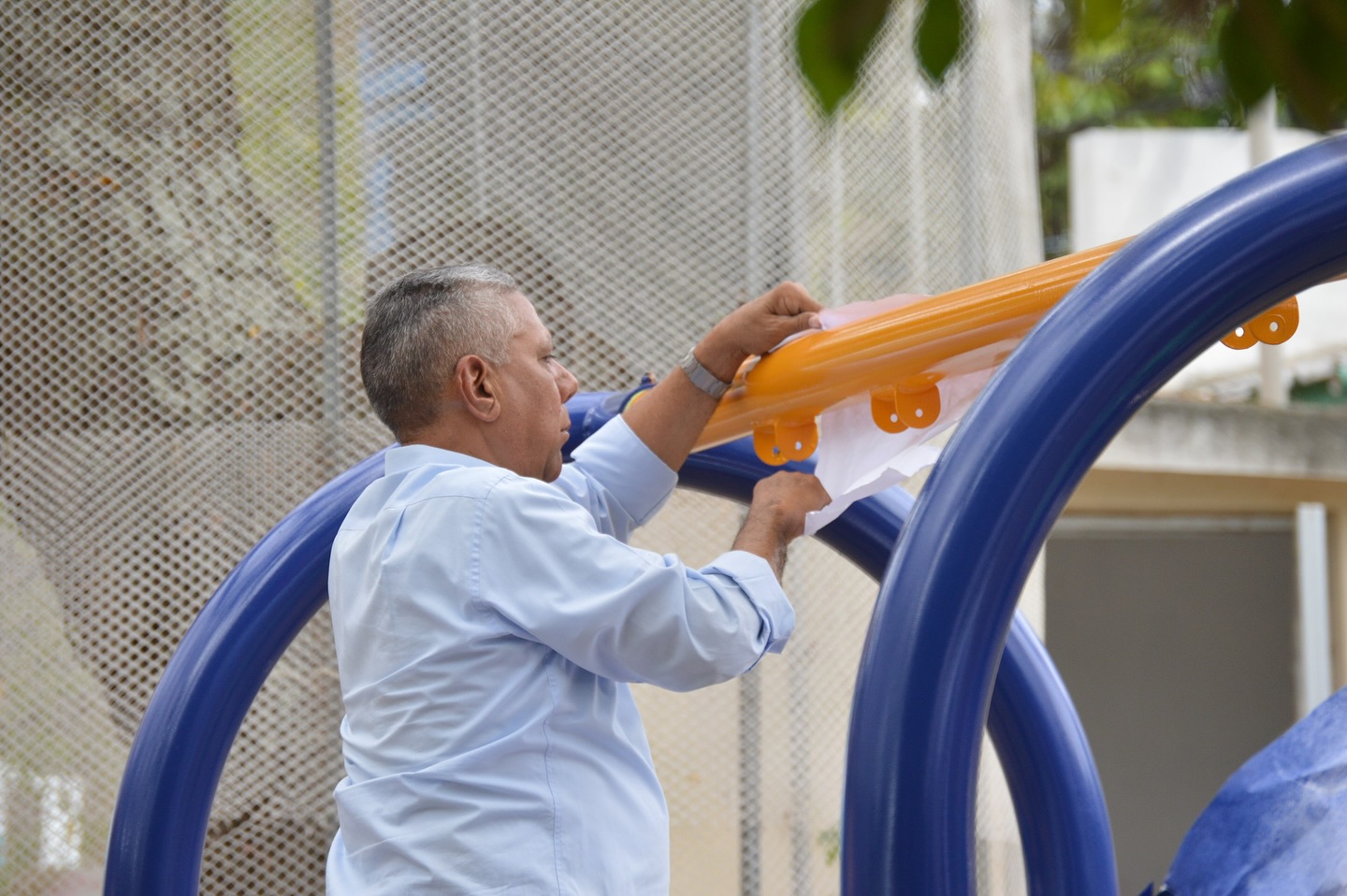 Estamos realizando el remozamiento del área de juegos del Parque Municipal, actualizando y dando mantenimiento a los juegos para brindar un espacio seguro y divertido para todos los niños.