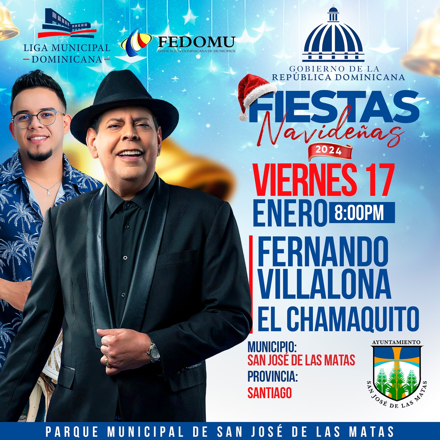 La actividad navideña que tanto esperabas con Fernando Villalona y El Chamaquito del Acordeón ha sido reprogramada. Ahora será este próximo viernes 17 de enero a las 8:00 PM.
