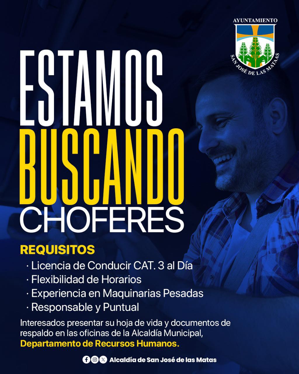 La Alcaldía Municipal informa que se encuentra abierta la convocatoria para la plaza de Chofer de Vehículos Pesados.